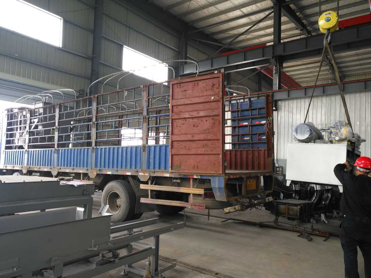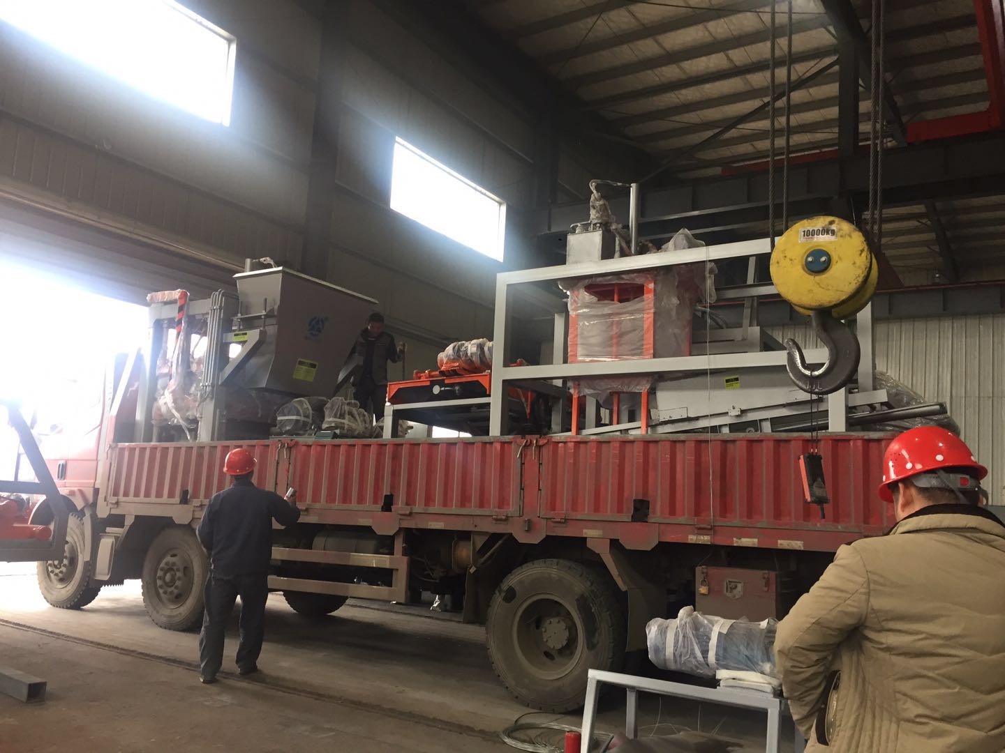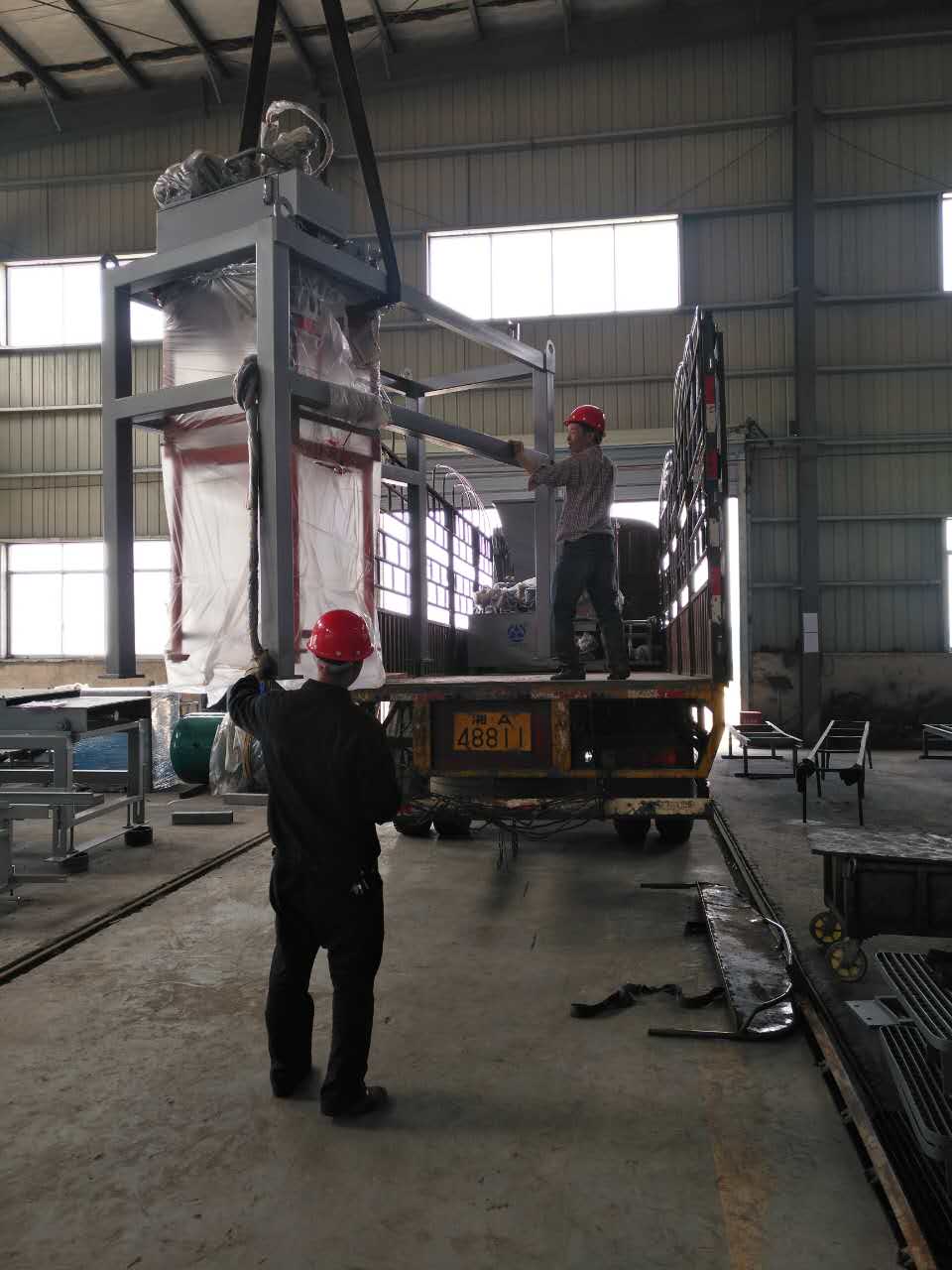 工作人員正在安裝配料倉
