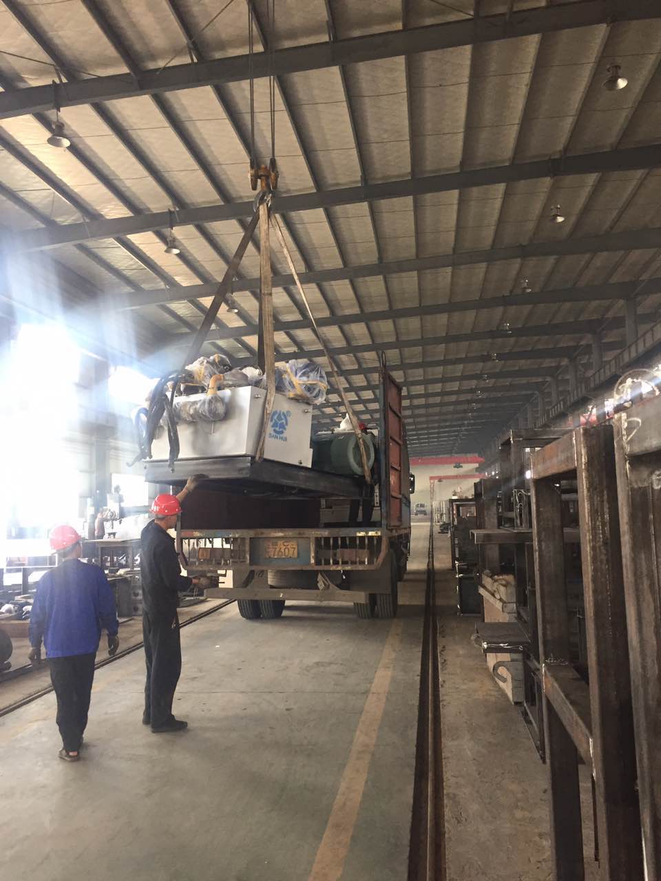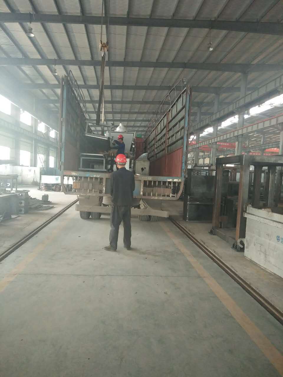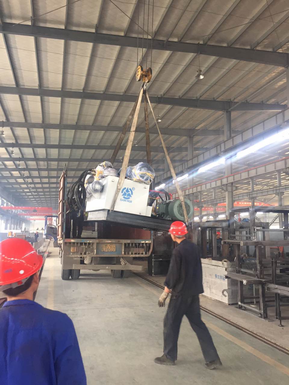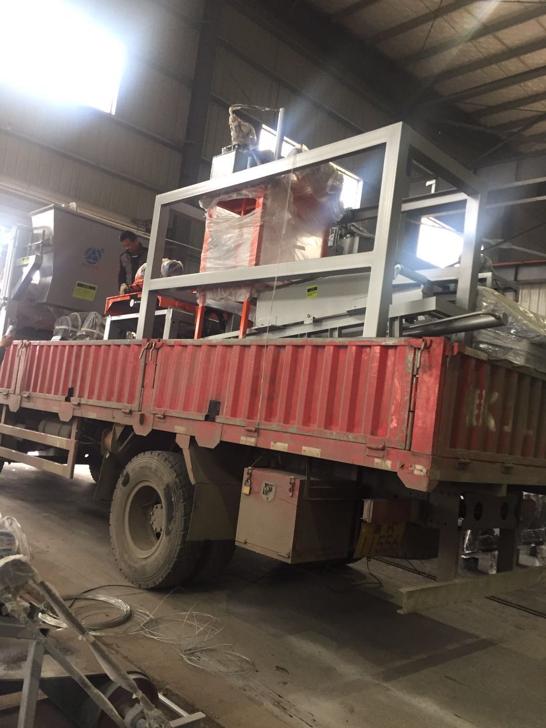 工作人員正在安裝配料倉